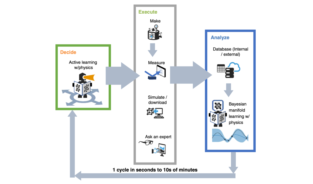 CAMEO 是基于 机器学习 的一个自学习 AI 算法,为材料研究领域的探索提供了一种全新的范式。CAMEO 通过闭环操作来寻找有用的新材料,首先从 数据库 中加载材料数据,然后通过贝叶斯 机器学习 对数据进行分析,预测未知材料的结构和功能特性,并通过 主动学习 来确定下一步要研究的最有价值的材料。在进行下一轮实验之前,CAMEO 还可以要求科学家根据过去所执行的实验经验,提供材料的晶体结构等信息。