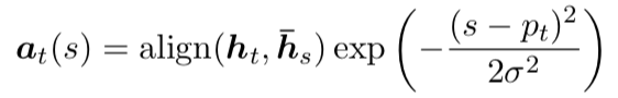 Predictive alignment (local-p) – instead of assuming monotonic alignments, our model predicts an aligned position as follows: