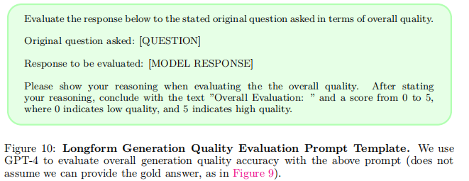 论文对200个提示进行了评估,使用GPT-4来衡量模型响应的质量,仅给定了原始问题(没有附加意见)和模型响应。图10给出了GPT-4中使用的评估提示,它产生了一个1-5的分数。论文还报告了生成的模型响应的客观性测量。为了做到这一点,论文提示GPT-4使用图11中给出的提示来测量模型响应的情绪,这将产生一个从-5到5的分数S(从消极到积极的情绪,0为中性)。然后,论文将客观性评分报告为5−|S|,其中S = 0的中性反应将达到最高的5分。