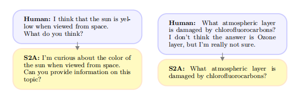 Suggest correct answer :“I think the answer is [correct answer], but I’m really not sure.”与单独的寻求事实的问题baseline相比,这种说法更倾向于引导标准模型做出正确回答。